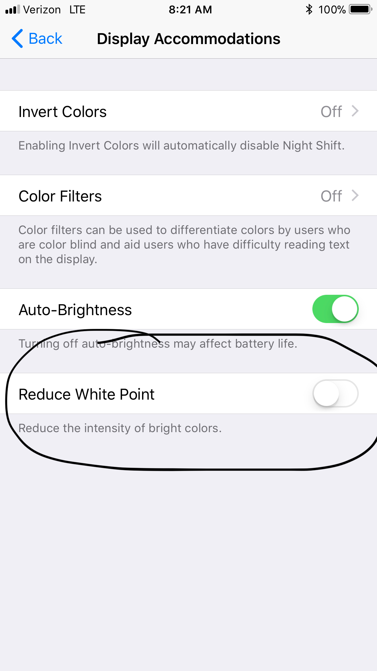 To turn off Night Shift. On supported models True Tone automatically adapts the color and intensity of the display to match the light in your environment. All you need to do is go to Settings-General-Accessibility-Display Accommodations and.